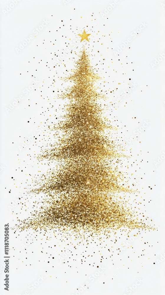 Golden sparkling Christmas tree with glittering ornaments and twinkling lights, festive holiday decoration on transparent background, elegant modern design for seasonal celebrations