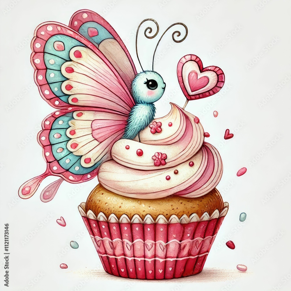 A colorful stack of adorable cupcakes decorated with hearts and sprinkles, perfect for a sweet celebration.