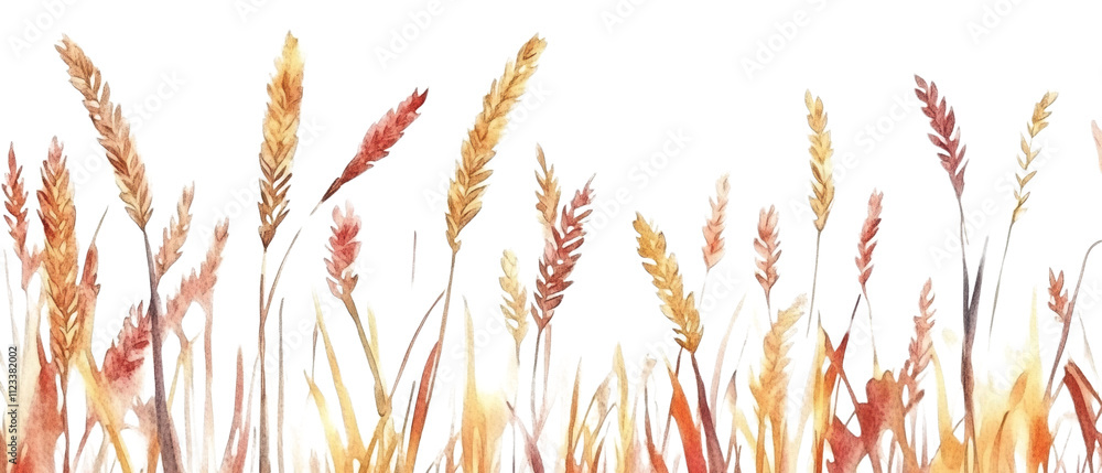 Wheat Fields Watercolor Illustration Isolated On Transparent Background Wallpaper Mural - Decorly Solutions | Decorly Solutions