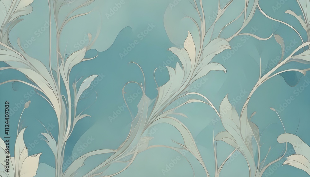 Textured fabric featuring intricate white leaf patterns on a soft blue background.