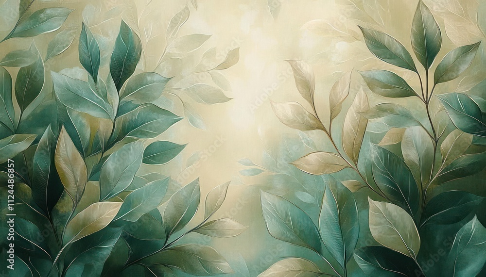 Botanical Art Leaves On Textured Wall In Pastel Wallpaper Mural - Decorly Solutions | Decorly Solutions