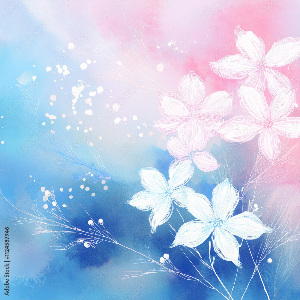 Pastel floral background with floating flowers