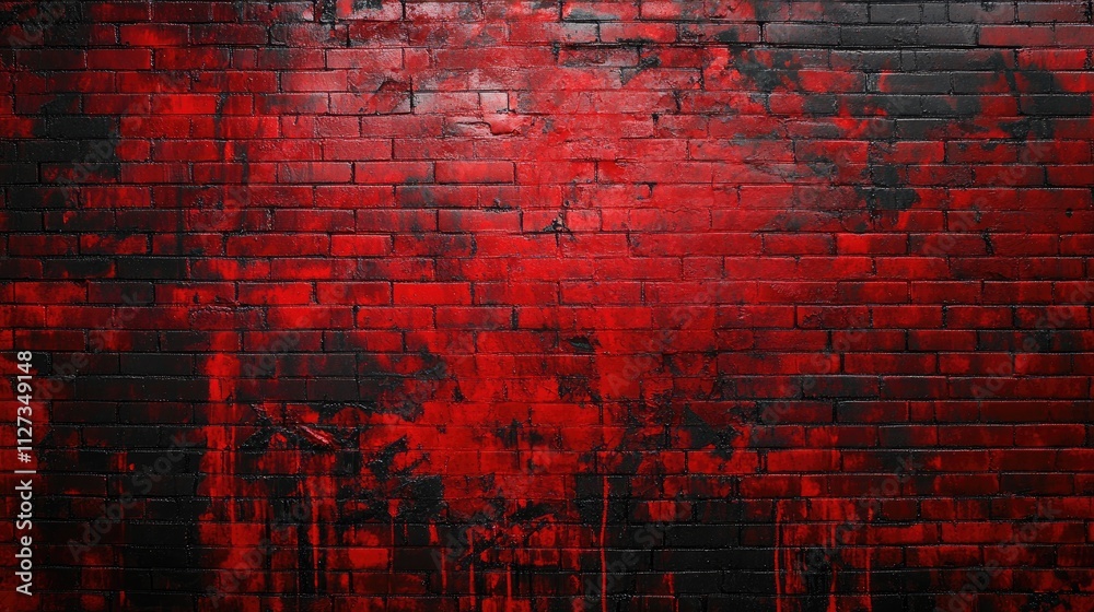 Red brick wall with abstract red and black paint splashes cr Wallpaper
