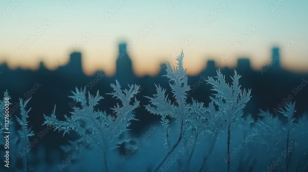 Eisblumen Mit Stadtblick Im Hintergrund Wallpaper Mural - Decorly Solutions | Decorly Solutions
