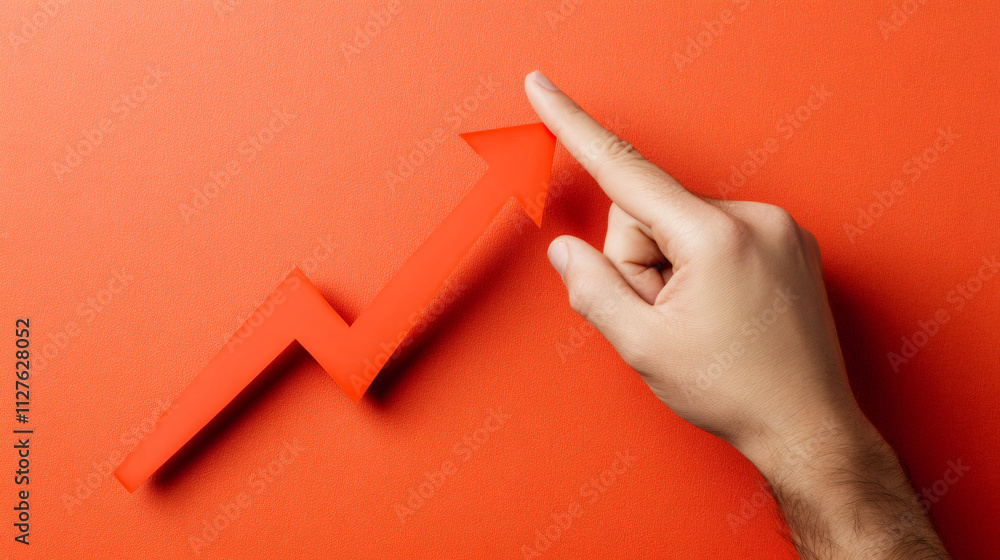 Male Hand Is Pointing At A Rising Red Wallpaper Mural - Decorly Solutions | Decorly Solutions