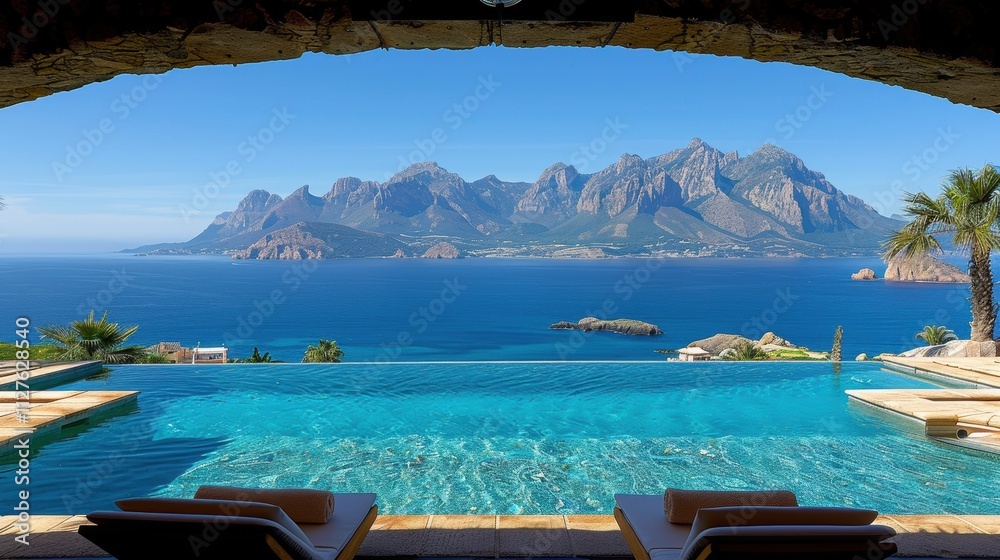 Majestic Oceanfront View With Infinity Pool Overlooking Stunning Wallpaper Mural - Decorly Solutions | Decorly Solutions