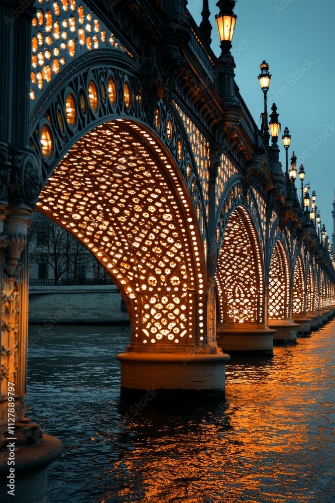 A City Bridge With Intricate Light Patterns Decorating Wallpaper Mural - Decorly Solutions | Decorly Solutions