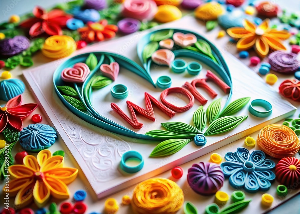 Colorful Paper Quilled Artwork With The Word Mom Wallpaper Mural - Decorly Solutions | Decorly Solutions