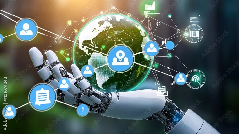 A Robot Is Holding A Globe With A Wallpaper Mural - Decorly Solutions | Decorly Solutions