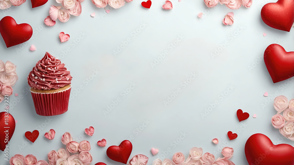 Cupcake con glaseado rosa y decoración de corazones sobre fo Wallpaper