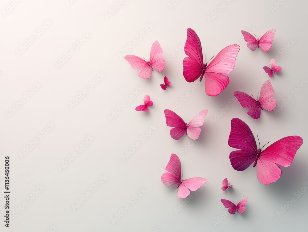 Delicate pink paper butterflies, layered abstract design on pink backdrop, texture, subtlety