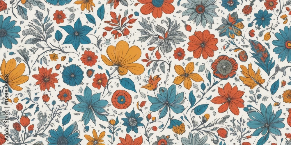 A Floral Patterned Fabric With Blue Orange And Wallpaper Mural - Decorly Solutions | Decorly Solutions