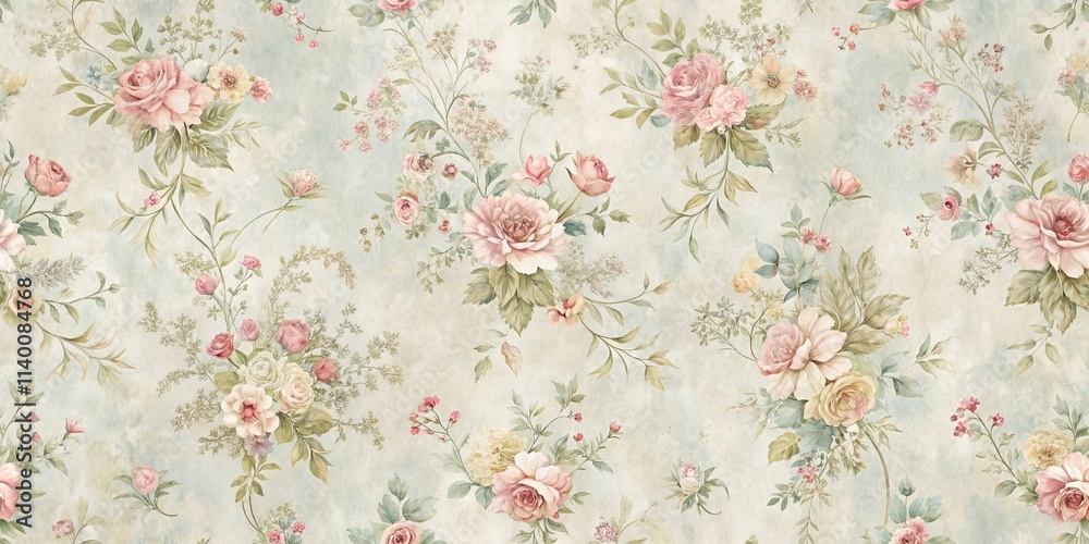 Elegant Pastel Rose and Foliage Vintage Floral Pattern Design for Fabric, Wallpaper, or Home Decor