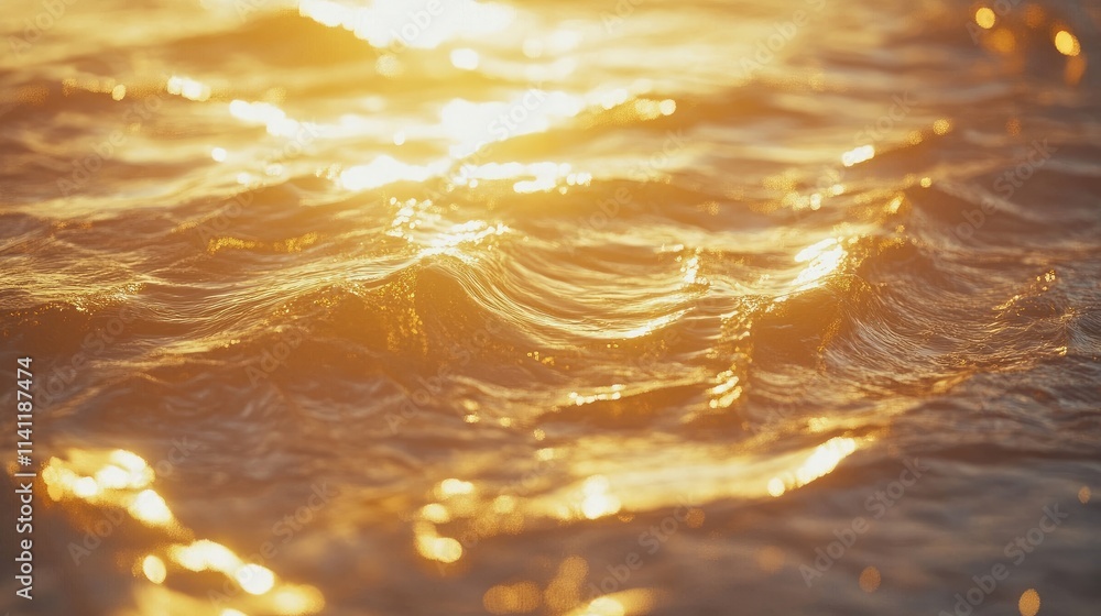 A serene view of sunlit ocean waves, reflecting golden hues on the water's surface, creating a tranquil and picturesque atmosphere.