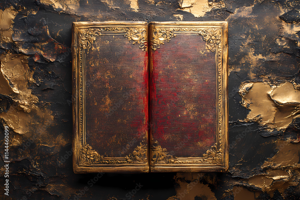 Vintage Leather Bound Book with Gold Inlay Illustration