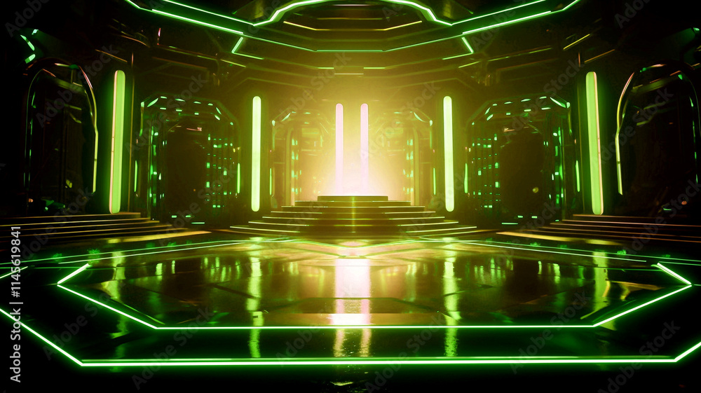 Stage Concert Podium Green Lights Beautiful Cinematic Lighting Wallpaper Mural - Decorly Solutions | Decorly Solutions