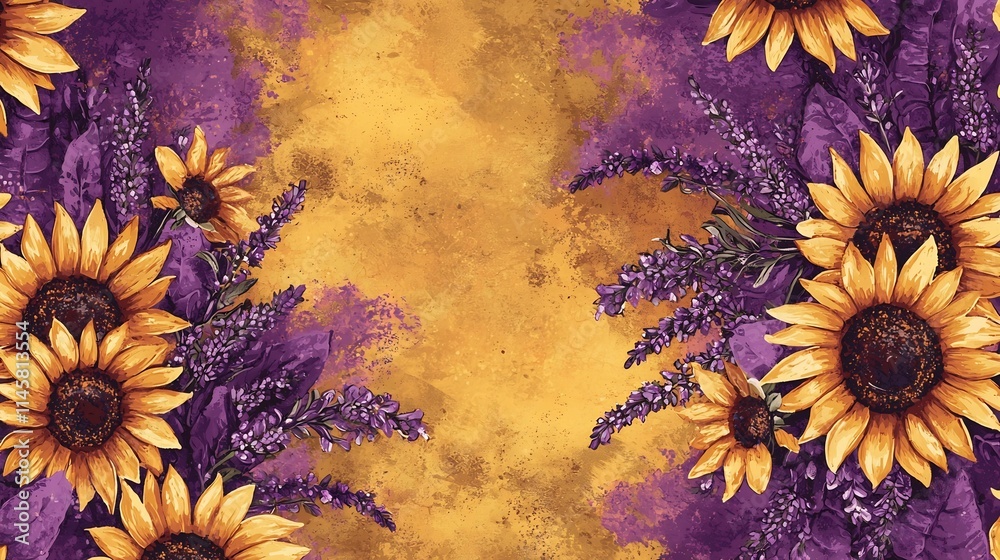 Vibrant Retro Floral Design With Sunflowers And Lavender Wallpaper Mural - Decorly Solutions | Decorly Solutions