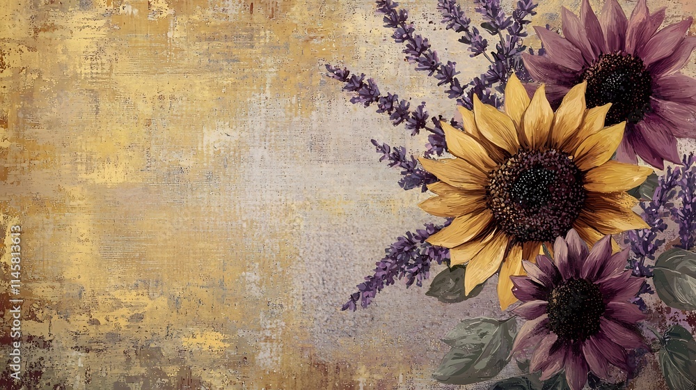 Vibrant Retro Floral Design With Bold Sunflowers And Wallpaper Mural - Decorly Solutions | Decorly Solutions