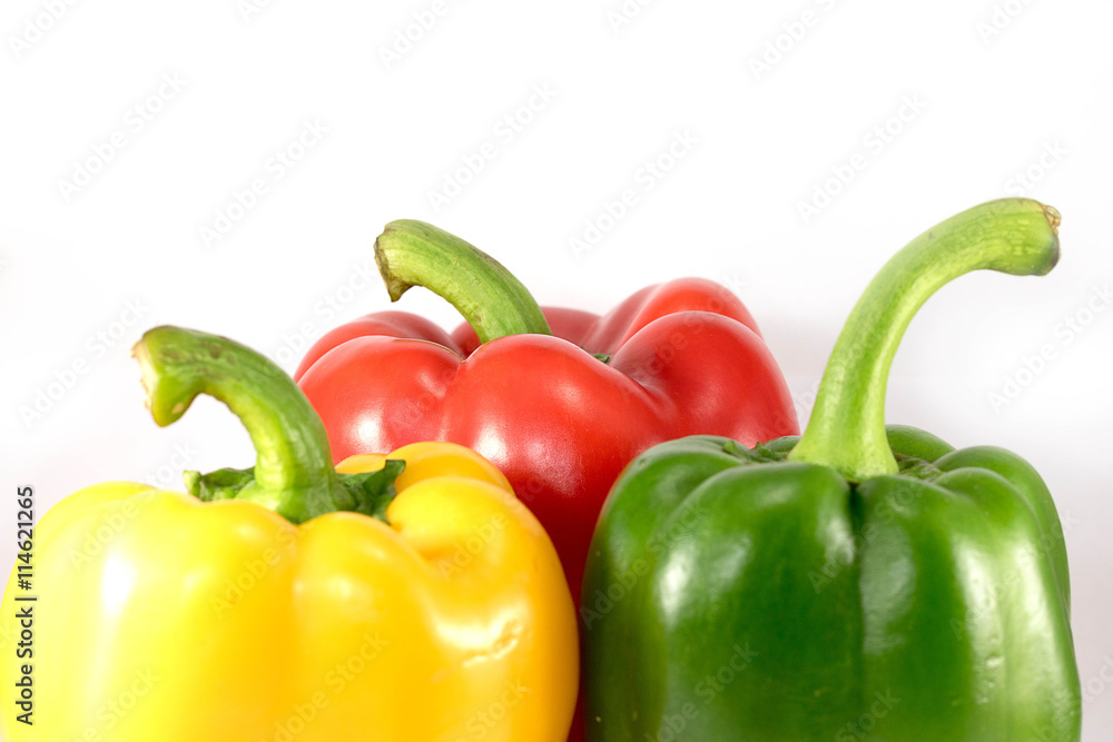 Fresh Green, yellow, red bell pepper. Sweet pepper. Giant pepper. Isolate on white background. Save with clipping path.