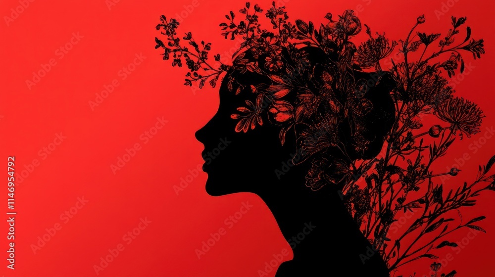 Silhouette Of Woman S Face Adorned With Floral Wallpaper Mural - Decorly Solutions | Decorly Solutions
