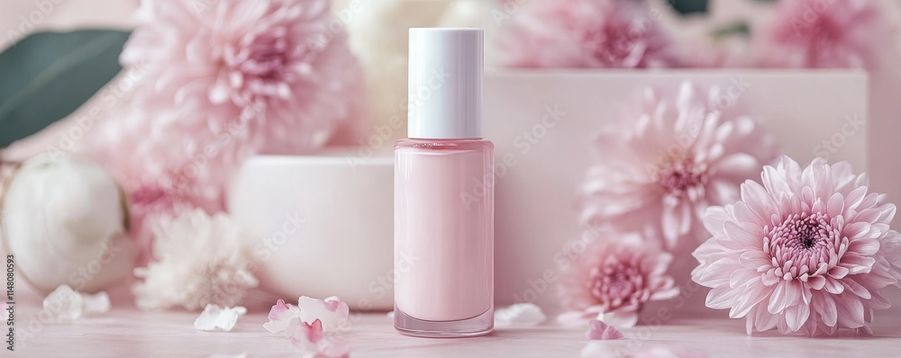 Natural organic cosmetics with delicate pink flowers Wallpaper