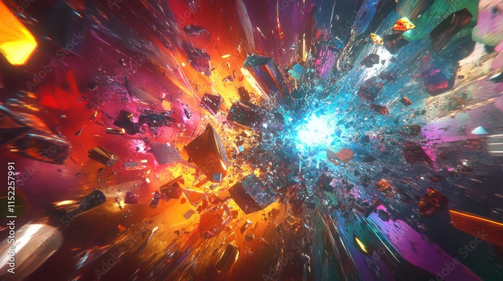 Abstract Vibrant Explosion Of Colorful Fragmented Crystals And Wallpaper Mural - Decorly Solutions | Decorly Solutions