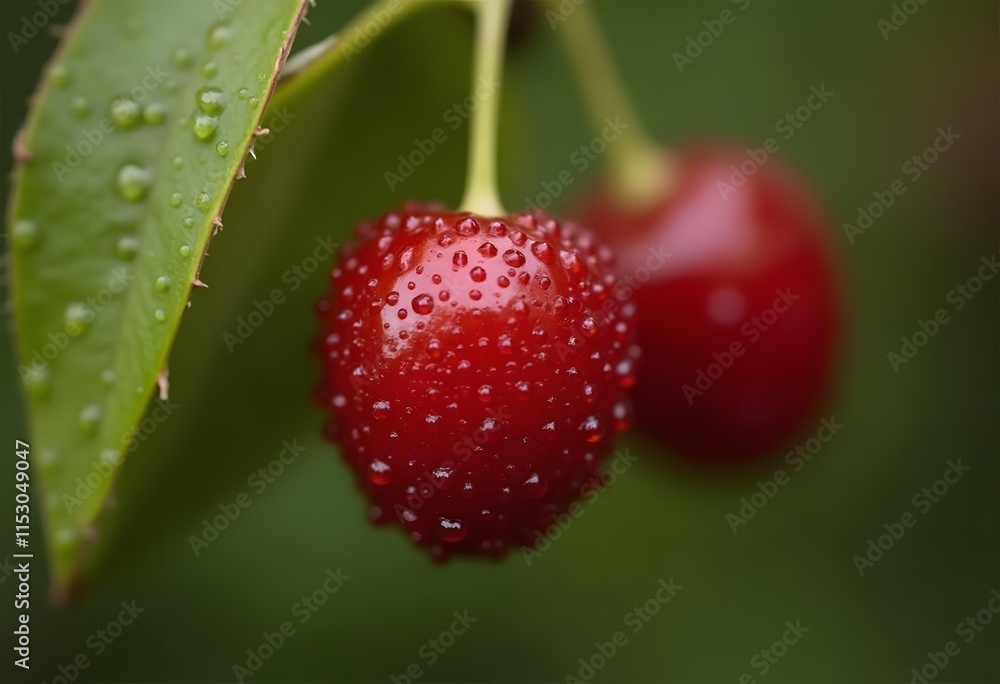 Close-up Of Ripe Red Cherries Covered With Water Wallpaper Mural - Decorly Solutions | Decorly Solutions