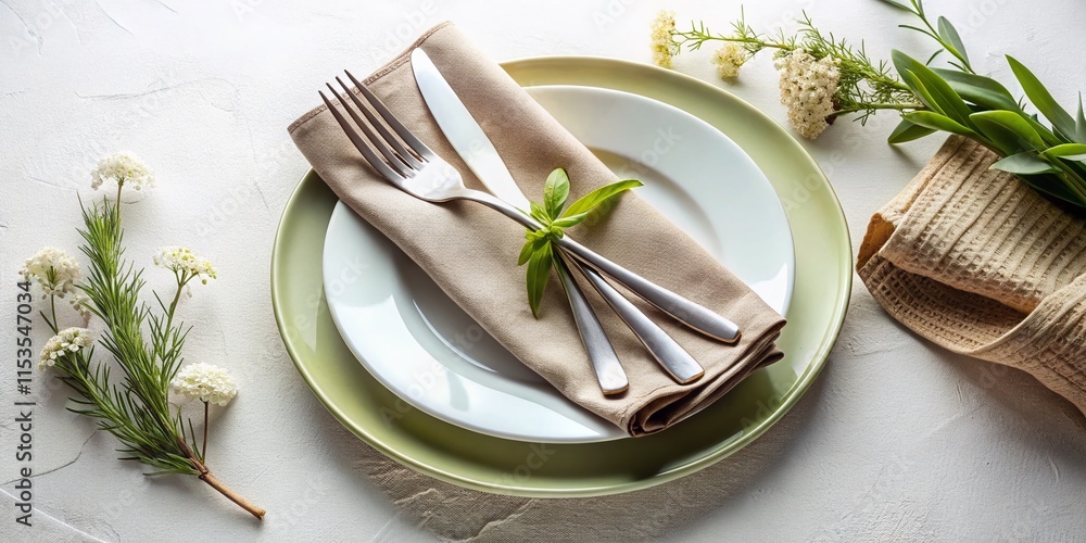 Modern Minimalist Table Setting White Plate Silverware Textured Wallpaper Mural - Decorly Solutions | Decorly Solutions