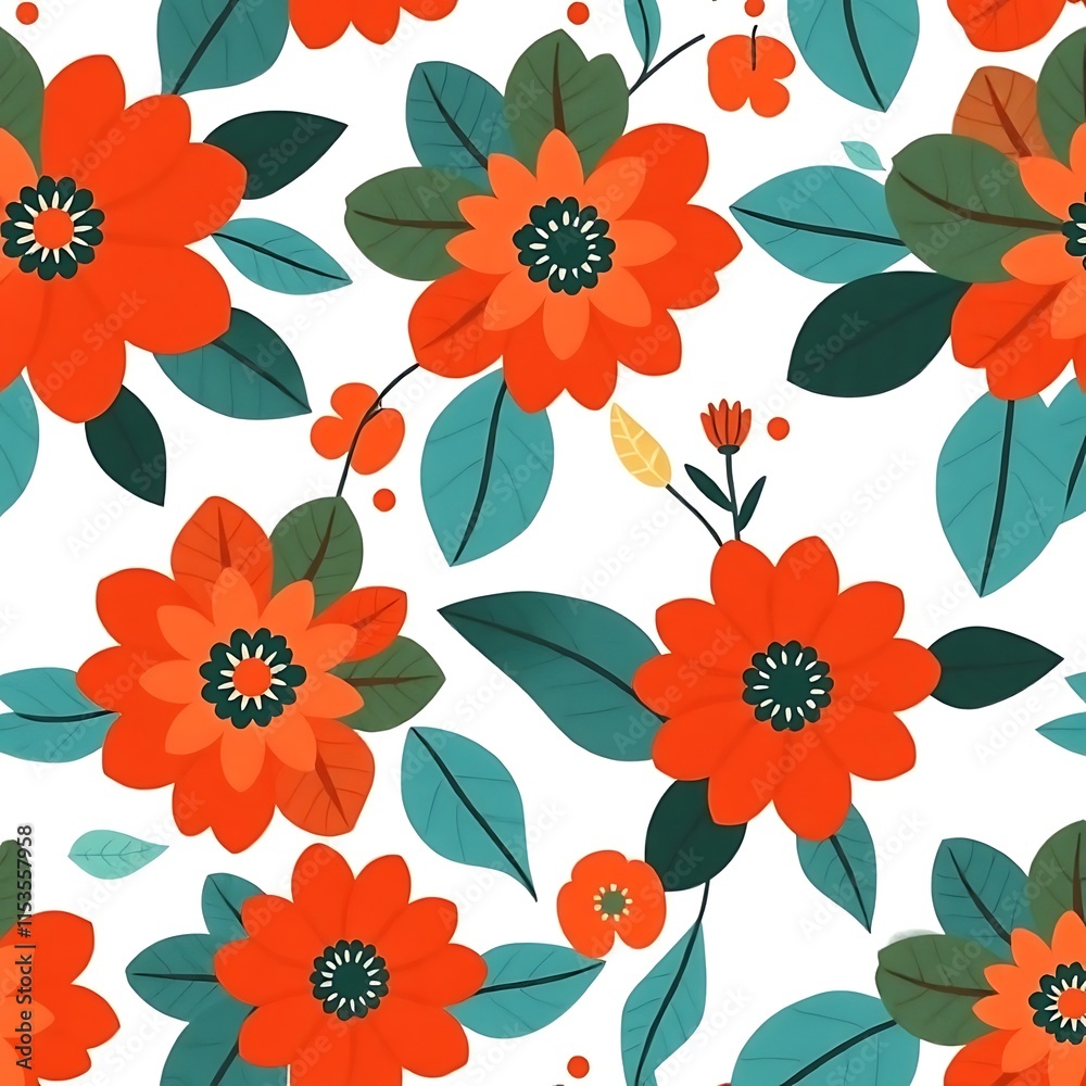 Red Floral Seamless Pattern Vibrant And Energetic This Wallpaper Mural - Decorly Solutions | Decorly Solutions