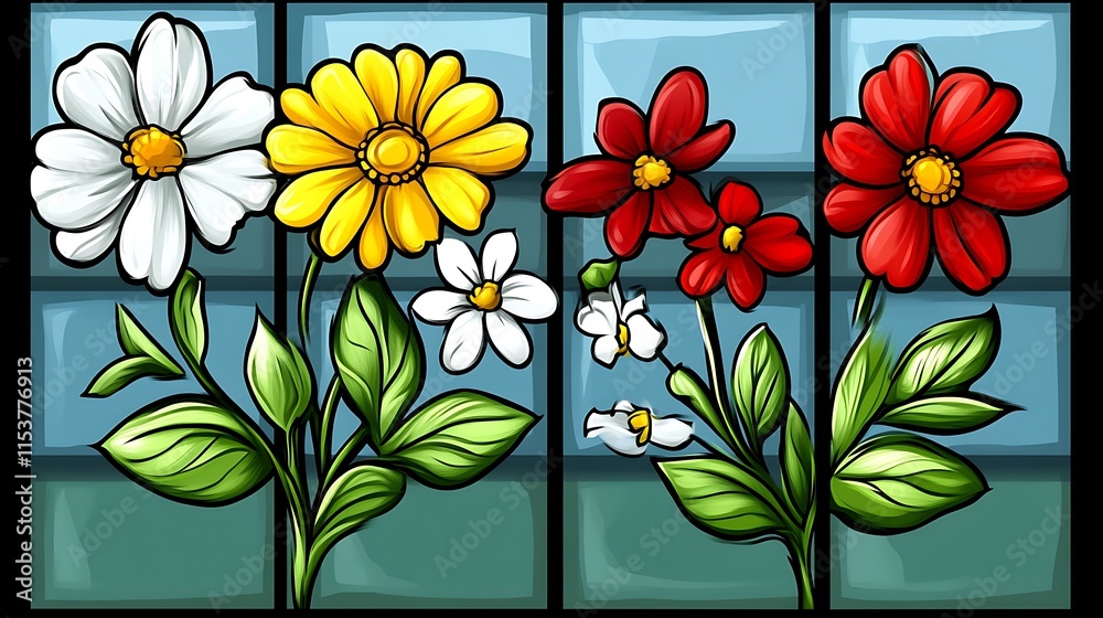 Colorful Flower Bouquet In Stained Glass Style Wallpaper Mural - Decorly Solutions | Decorly Solutions