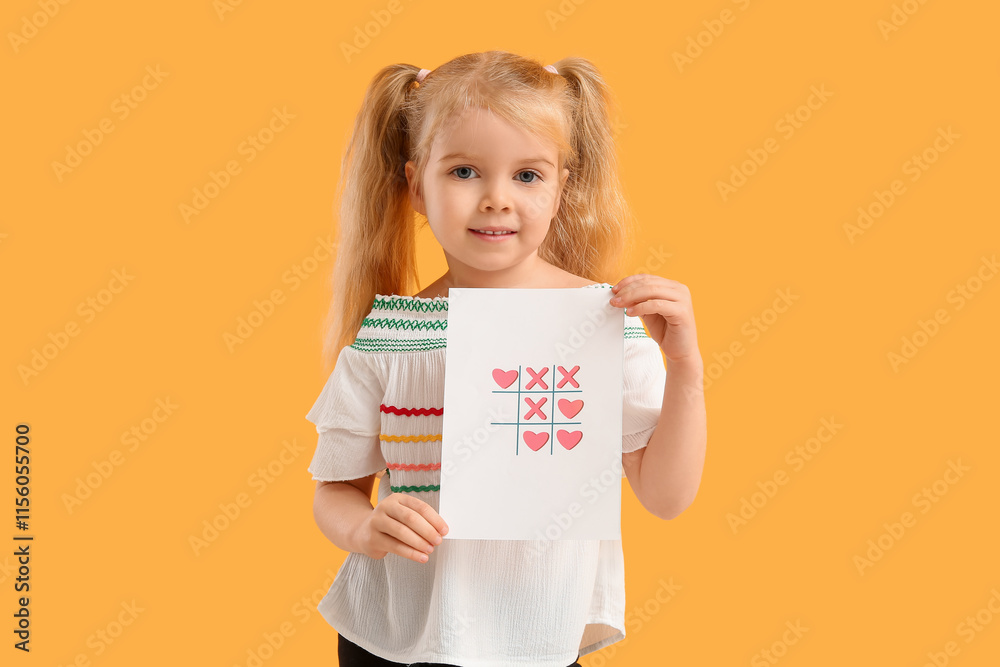 Cute Little Girl With Greeting Card On Yellow Wallpaper Mural - Decorly Solutions | Decorly Solutions