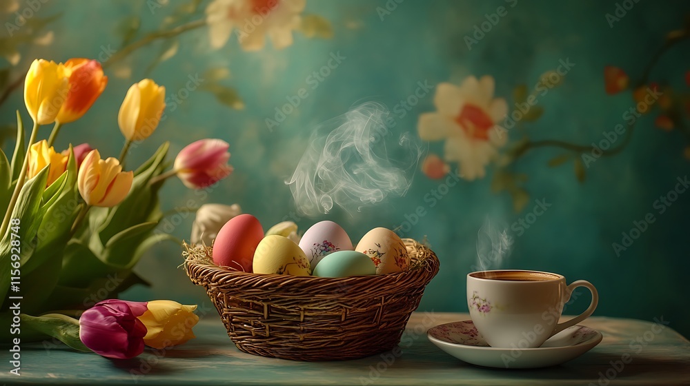Warm Easter Eggs Nestled In Spring Tulips Photo Wallpaper Mural - Decorly Solutions | Decorly Solutions