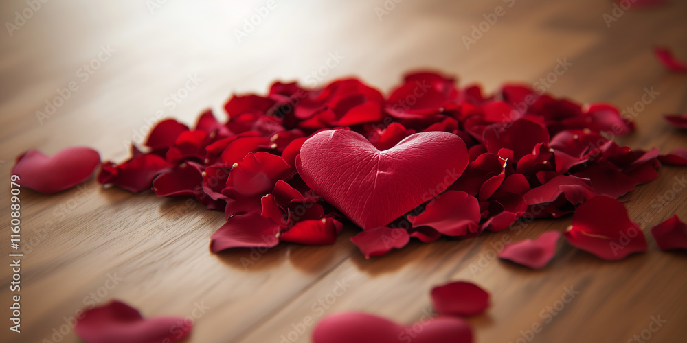 Red Rose Petals On Wooden Background – Romantic Wallpaper Mural - Decorly Solutions | Decorly Solutions