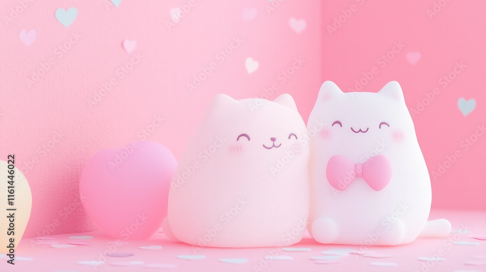 Valentines Day Card 3d Kawaii Two Cats Kissing Wallpaper Mural - Decorly Solutions | Decorly Solutions