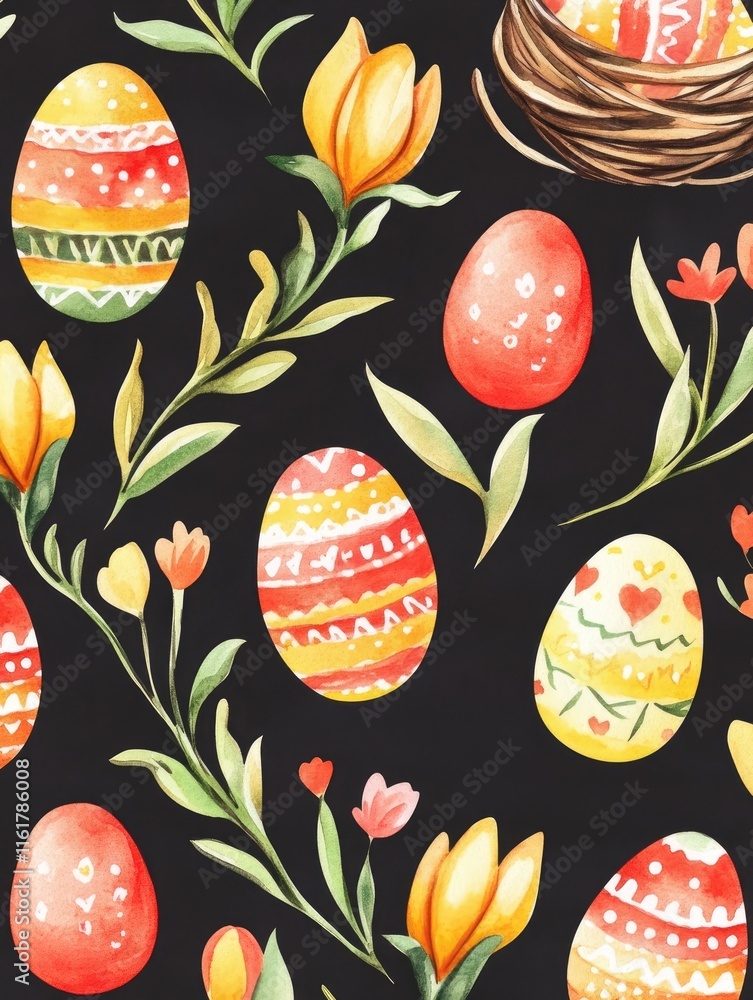 A Colorful Easter-themed Design Featuring Decorated Eggs And Wallpaper Mural - Decorly Solutions | Decorly Solutions