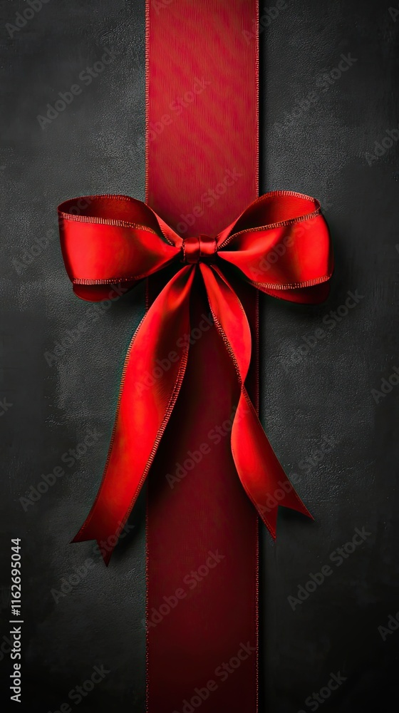 A stylish vertical red ribbon tied neatly into a bow against a dark backdrop. Perfect for themes of elegance, celebration, and gift wrapping