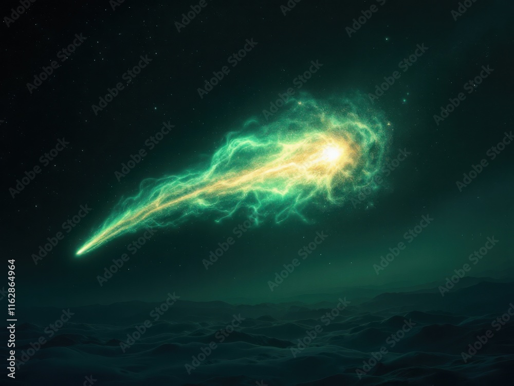 Celestial Comet: Green and Gold Comet Streaking Through the Wallpaper