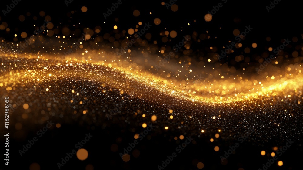 Sparkling golden particles creating a magical wave effect in Wallpaper