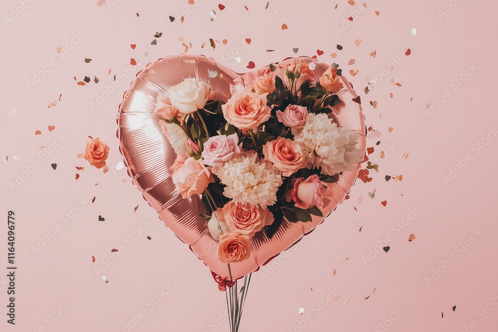 Heart Shape Pink Foil Ballon With Flying Pink Wallpaper Mural - Decorly Solutions | Decorly Solutions