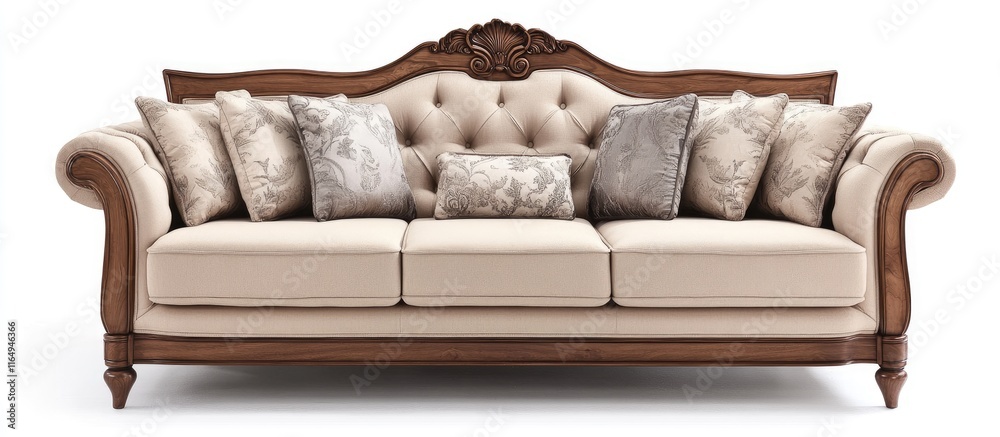 Elegant Cream Sofa Set Featuring A Wooden Headboard Wallpaper Mural - Decorly Solutions | Decorly Solutions