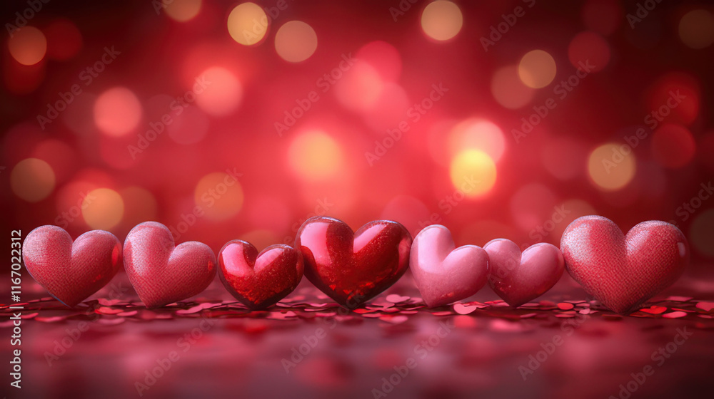 Pink and red hearts on pink bokeh background with space for Wallpaper
