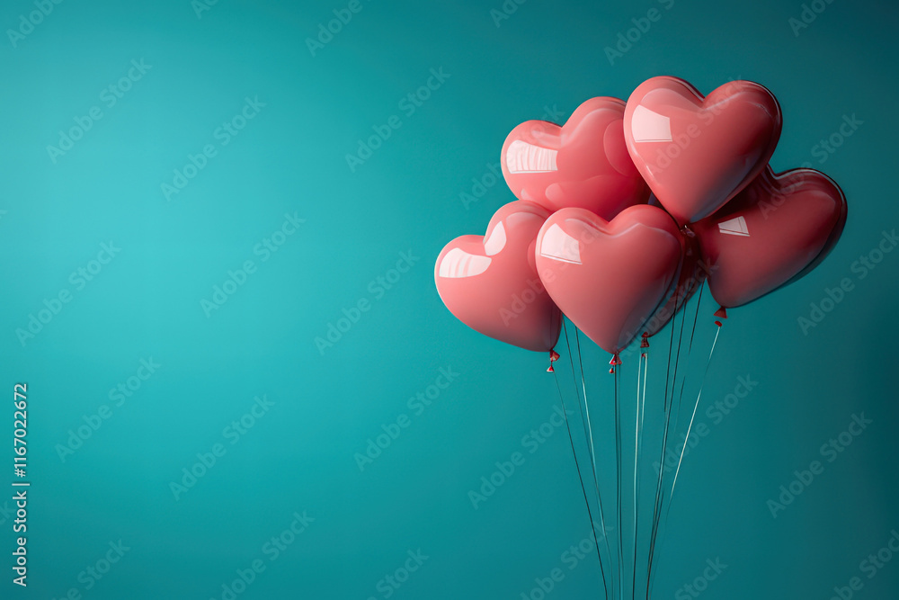 Heart Balloons Ascending: Romance and Celebration Against a Turquoise Sky Backdrop