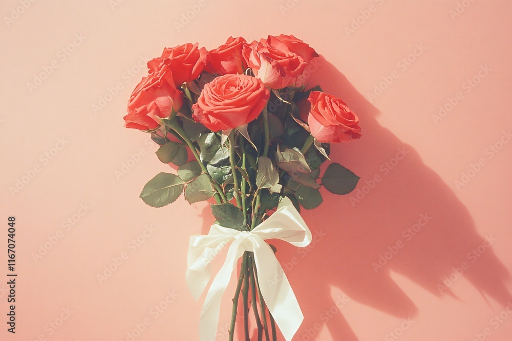 Elegant Bouquet Of Pink Roses With Ribbon On Wallpaper Mural - Decorly Solutions | Decorly Solutions