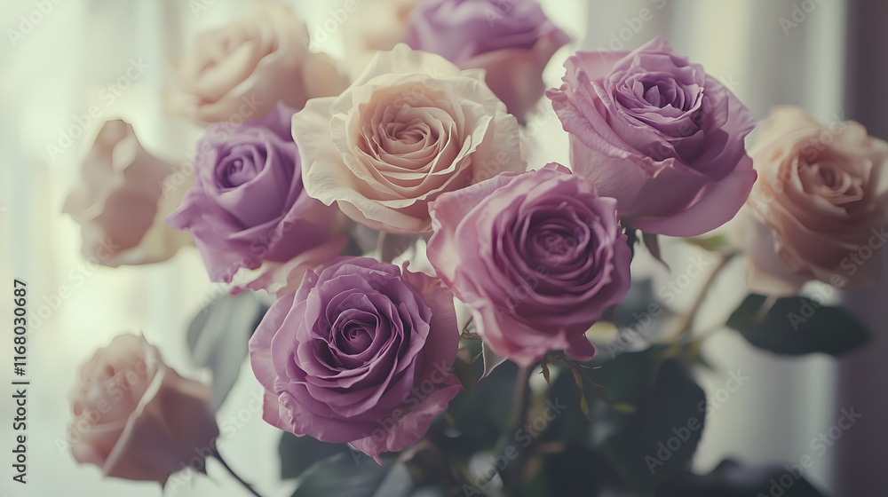 Bouquet Of Purple Roses On White Wallpaper Mural - Decorly Solutions | Decorly Solutions