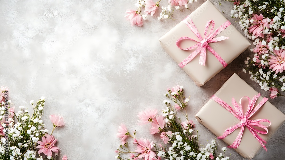 Elegant Gifts Adorned With Pink Flowers And Ribbons Wallpaper