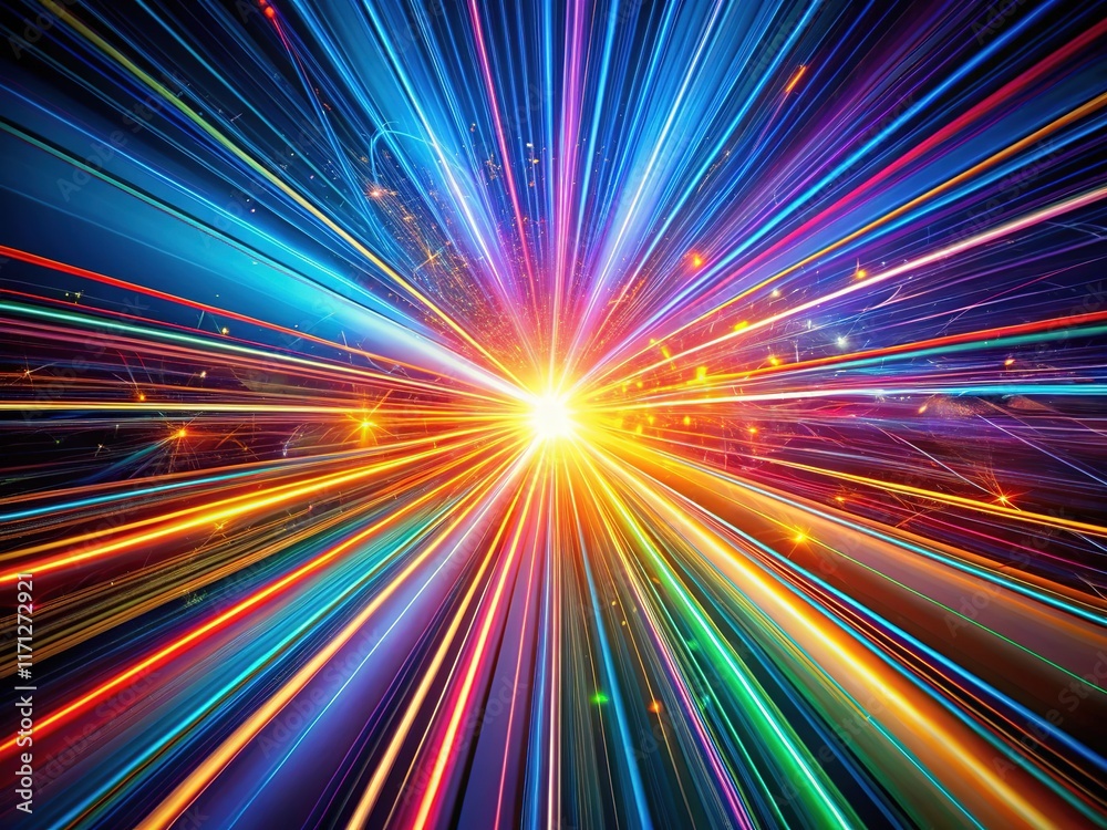 Abstract streaks of blue, purple, and red light create a sense of speed