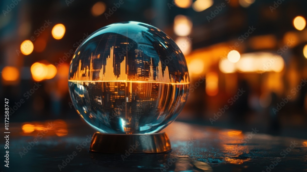 Glowing Upward Arrow Inside A Crystal Ball On A City Street At Night Symbolizes Growth, Potential, And A Positive Future Direction