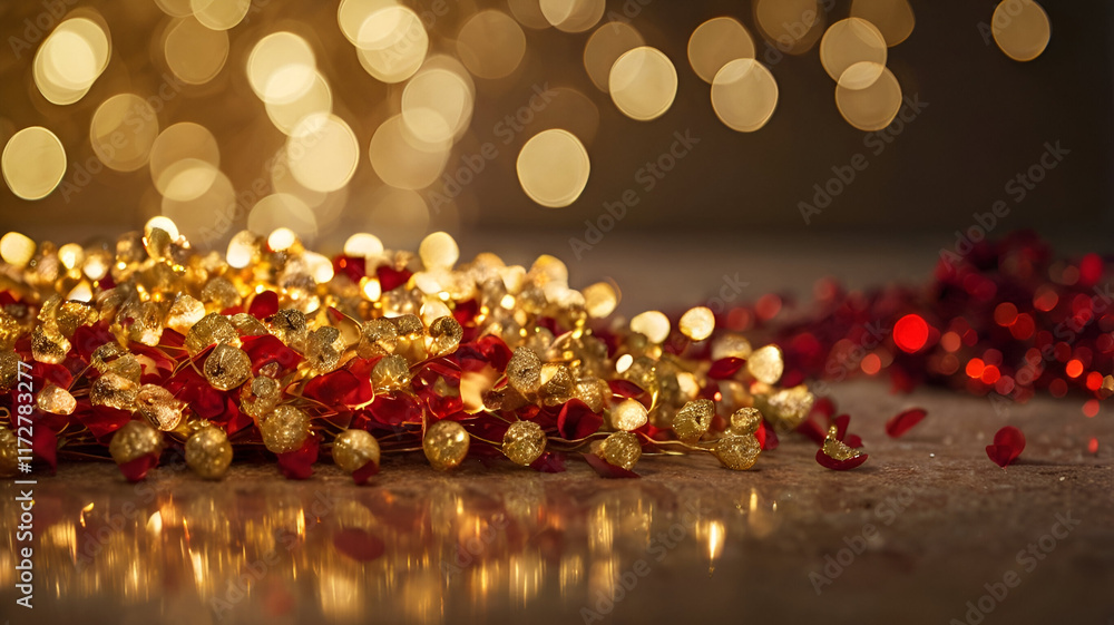 Elegant Golden Bokeh Effect with Subtle Sparkles and Decorative Orbs for a Gentle Touch in Holiday or Festive Themes