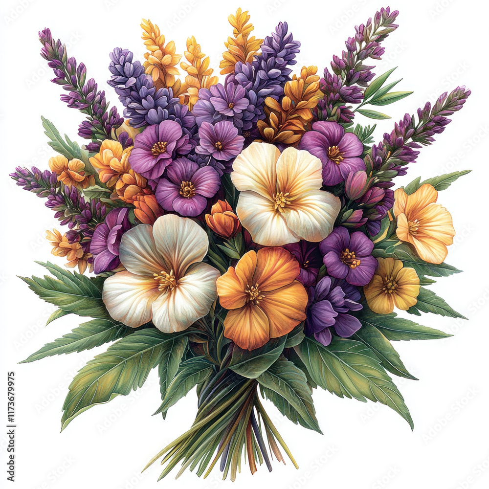 Colorful Wildflower Bouquet Tied White Background Floral Arrangement Wallpaper Mural - Decorly Solutions | Decorly Solutions