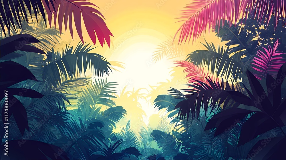 Vibrant Tropical Sunset Lush Palm Leaves And Golden Wallpaper Mural - Decorly Solutions | Decorly Solutions